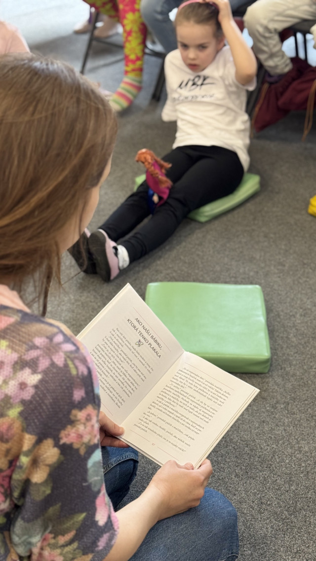 Program: Z knihy Rozprávky o psíkovi a mačičke si prečítame príbeh Ako našli bábiku, ktorá tenko plakala.
