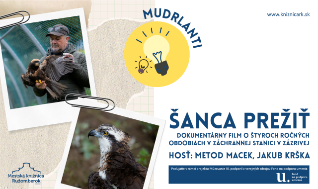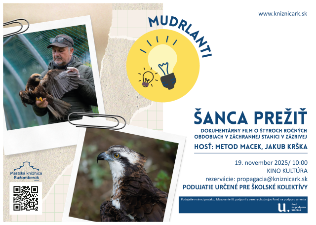 Na tomto verejnom podujatí budú vyhotovované fotografie prevádzkovateľom Mestská knižnica Ružomberok za účelom propagácie na webovom sídle a sociálnej sieti, účasťou na podujatí súhlasíte s ich zverejnením. Vaše údaje o rezervácii budú po skončení podujatia vymazané, v zmysle pravidiel GDPR podľa nariadenia EP a Rady EÚ č. 2016/679  a zákona č. 18/2018 Z.z.