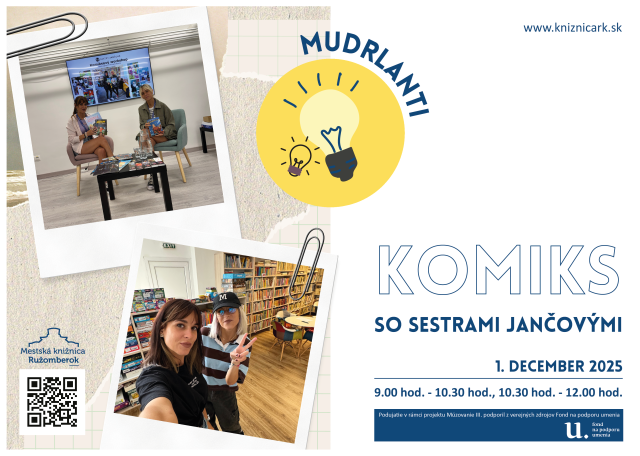 Na tomto verejnom podujatí budú vyhotovované fotografie prevádzkovateľom Mestská knižnica Ružomberok za účelom propagácie na webovom sídle a sociálnej sieti, účasťou na podujatí súhlasíte s ich zverejnením. Vaše údaje o rezervácii budú po skončení podujatia vymazané, v zmysle pravidiel GDPR podľa nariadenia EP a Rady EÚ č. 2016/679  a zákona č. 18/2018 Z.z.