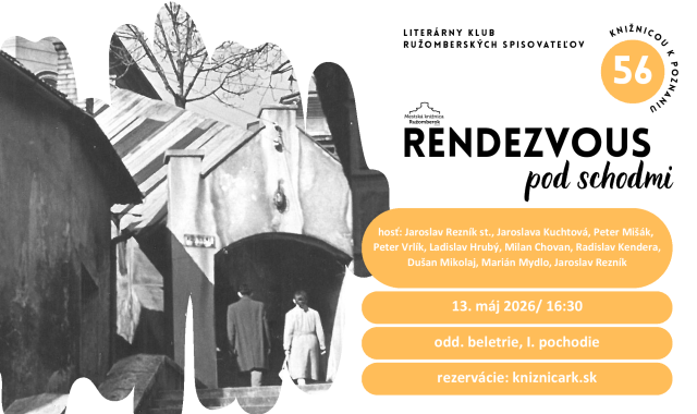 Na tomto verejnom podujatí budú vyhotovované fotografie prevádzkovateľom Mestská knižnica Ružomberok za účelom propagácie na webovom sídle a sociálnej sieti. Účasťou na podujatí súhlasíte s ich zverejnením. Budeme s nimi nakladať v zmysle pravidiel GDPR podľa nariadenia EP a Rady EÚ č. 2016/679 a zákona č. 18/2018 Z.z.